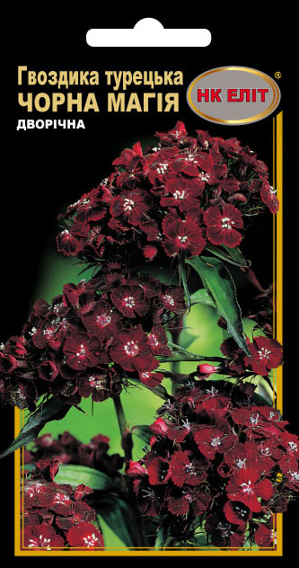 Гвоздика Турецька Пурпурова Королева - Дворічна рослина, висотою 50-60 см. Квіти махрові, суцвіття пурпурового кольору. Розмножується насінням, не переносить посадки. Використовується для зрізу та озеленення. Висівають у відкритий грунт в кінці квітня, на початку травня. Квітує з червня по серпень. У вологому грунті сходи з’являються на 7-8-й день після посіву.