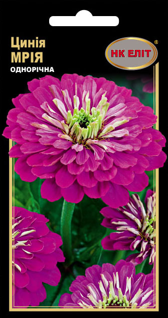 Цинія Мрія - Однорічна рослина, висотою 50-80см. Кущі розлогі, з міцними стеблами. Квіткові корзини діаметром від 8 до 15 см з широкими щільними язичковими і дрібними трубчастими квітками, махрові, бузкового забарвлення. Квітує з липня до заморозків. Використовують на зріз, у вазах, озеленення, для клумб та садових ділянок. Вирощується висівом насіння у відкритий ґрунт в травні або для більш раннього цвітіння, через розсаду у березні-квітні.