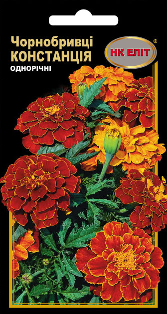 Чорнобривці махрові Гном--Низькоросла рослина, висотою 20-25 см. Суцвіття - корзинки діаметром 5см, золотисто-жовті з невеликим оранжевим п’ятном в центрі суцвіття, махрові. Яскраві суцвіття прикрашають клумби, та присадибні ділянки до пізньої осені.Висівають у відкритий грунт в кінці квітня, травні. Квітує з червня по серпень.