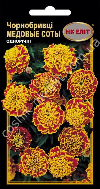 Чорнобривці Медовий Місяць - Низькоросла рослина, висотою 25-30см, має тривале і рясне цвітіння. Зберігає яскравість кольорів, привабливість при любих несприятливих умовах. Суцвіття-корзинки діаметром 4-6см, золотисто-жовтого кольору, махрові. Висівають у відкритий грунт в кінці квітня, травні. Квітує з червня по вересень. Яскраві суцвіття прикрашають клумби, бордюри та присадибні ділянки до пізньої осені.